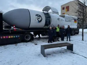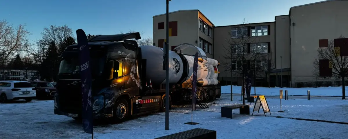 5. Januar 2026Wer in den letzten Tagen am Schulhof der Oberschule Rauschwalde vorbeikam, musste sich vermutlich zweimal die Augen reiben. Wo sonst Schüler ihre Pausen verbringen, ragte plötzlich eine riesige Rakete in den Winterhimmel: Der Spacebuzz One war zu Gast.