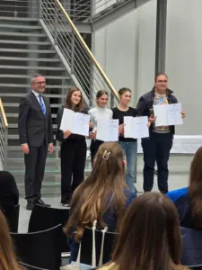 Am 16. April wurden die Landessieger im Sächsischen Staatsministerium für Kultus ausgezeichnet. 50 Schüler aus ganz Sachsen traten an – aus den Klassenstufen 8 und 9, in den Sprachen Englisch, Russisch, Französisch und Spanisch. Wer das Finale erreichte, hatte sich zuvor schon beim regionalen Wettbewerb durchgesetzt. Im Landesfinale warteten dann Lese- und Hörverständnis, Schreibaufgaben und mündliche Kommunikation auf die Teilnehmer. Kein Spaziergang.