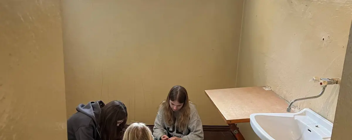 Zu Beginn beschäftigten wir uns mit der Zeit unmittelbar nach dem Zweiten Weltkrieg. In Gruppen erarbeiteten wir zentrale Fakten zum sowjetischen Speziallager in Bautzen I (1945–1956), in dem die Häftlinge unter äußerst unmenschlichen Bedingungen inhaftiert waren. Besonders eindrücklich war dabei die Arbeitsatmosphäre: Wir bearbeiteten unsere Aufgaben in engen, originalgetreu erhaltenen Zellen aus der Zeit des Kalten Krieges. Die beklemmende Enge und die karge Ausstattung vermittelten uns einen ersten Eindruck davon, was es bedeutete, hier über lange Zeiträume eingesperrt zu sein.